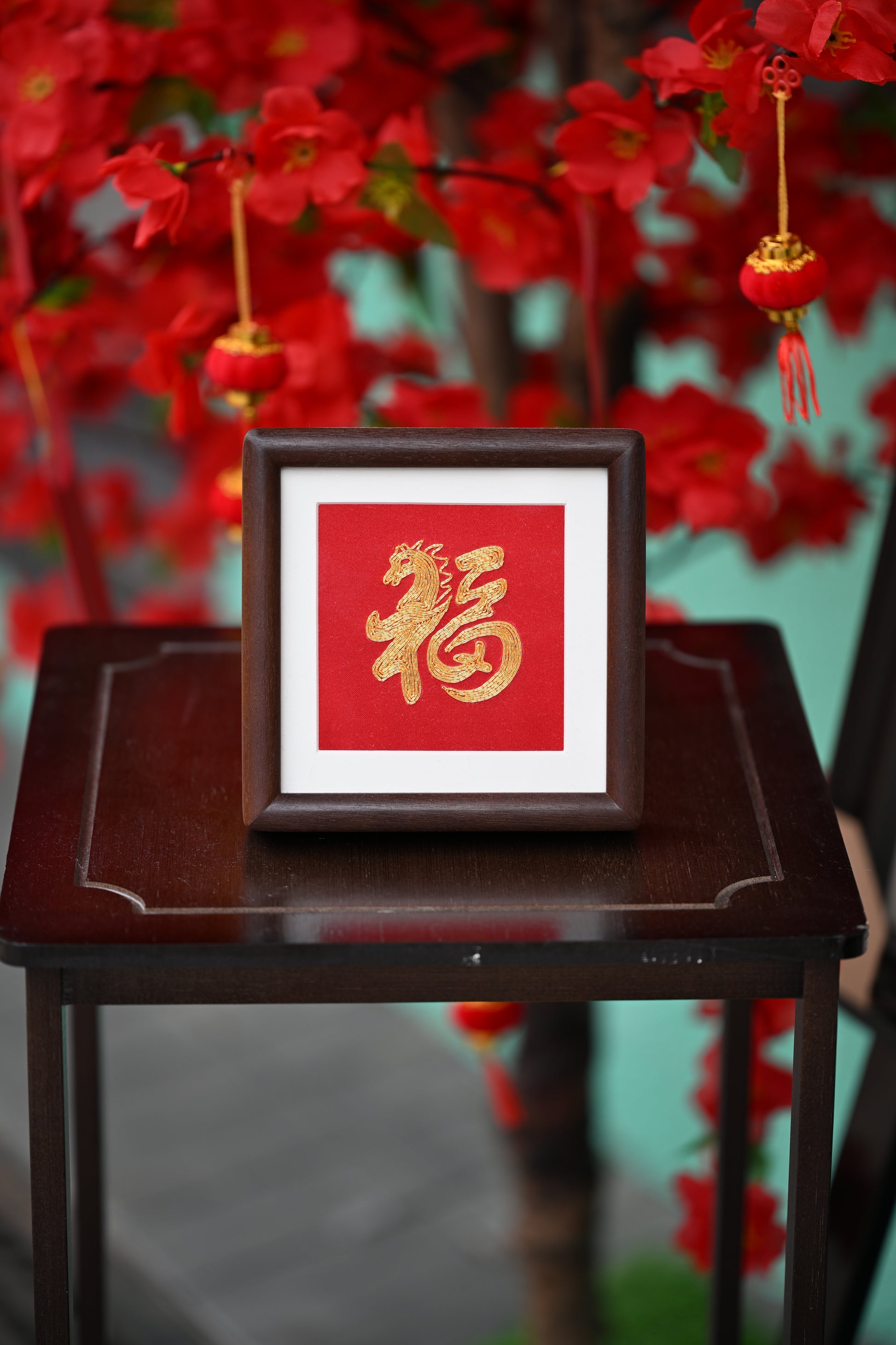 馬年的「福」字在這件單面盤金繡中化作藝術傑作,工藝師巧妙地將一匹駿馬融入福字設計,象徵馬年的蓬勃生機與福運相伴。金線在光影流轉間散發溫潤光彩,寄託對新歲的美好祝願與期盼。以精妙的針法將古老刺繡技藝與當代居家美學相融相生,每一針都凝聚匠心與創意。無論置於客廳、書房或辦公桌側,都能為環境增添文化底蘊與精緻氣韻,是兼具吉祥寓意與藝術價值的居家雅飾。